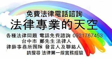 【免費電話法律諮詢全省優秀律師事務所團隊【發言人及聯絡人】鄭先生0921767453台中市第一線法律【實務經驗請直接撥打電話諮詢】